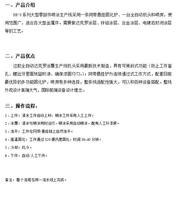 產品名稱:DX-3系列大型零部件噴涂生產線